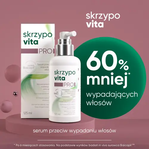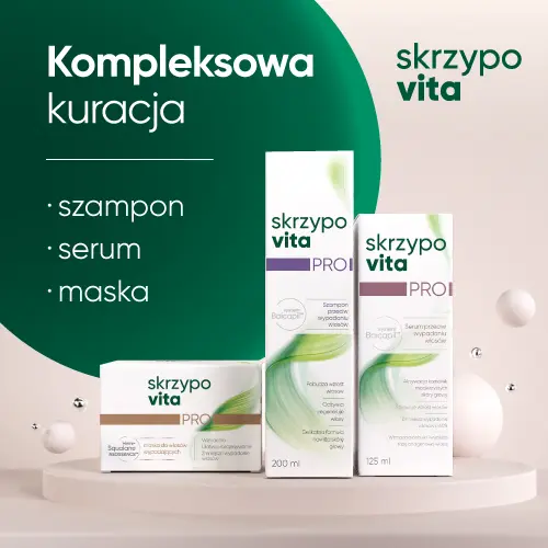 Najlepsze efekty osiągniesz stosując serum w połączeniu z Skrzypovita PRO szampon przeciw wypadaniu włosów oraz regeneracyjną maską do włosów Skrzypovita PRO.