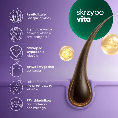 Codzienna, systematyczna aplikacja serum Skrzypovita PRO zapewni Twoim włosom młodość, żywotność i uchroni je przed przerzedzaniem.