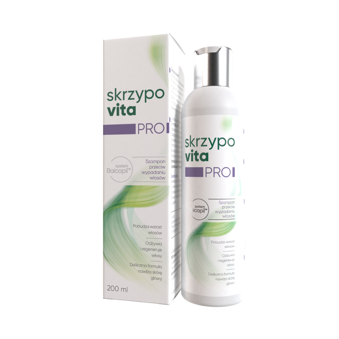 Najlepsze efekty osiągniesz stosując szampon w połączeniu ze Skrzypovitą PRO serum przeciw wypadaniu włosów oraz regeneracyjną maską do włosów Skrzypovita PRO.